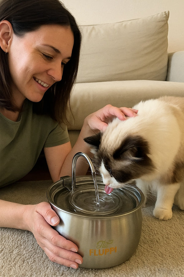 ⭐⭐⭐⭐⭐ Ich hatte immer Angst, dass meine Katze zu wenig trinkt. Seit dem HeyFluppi Brunnen trinkt sie jeden Tag freiwillig ,ich bin so erleichtert!